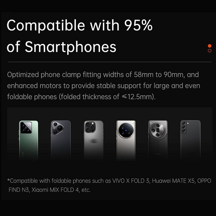 Smartphone Gimbal Detachable Touchscreen Remote,Extension Pole,Magnetic Fill Light for Video Recording ,